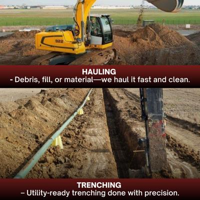 Whether it's a site prep, trenching, or material hauling, we'll keep your project moving.
